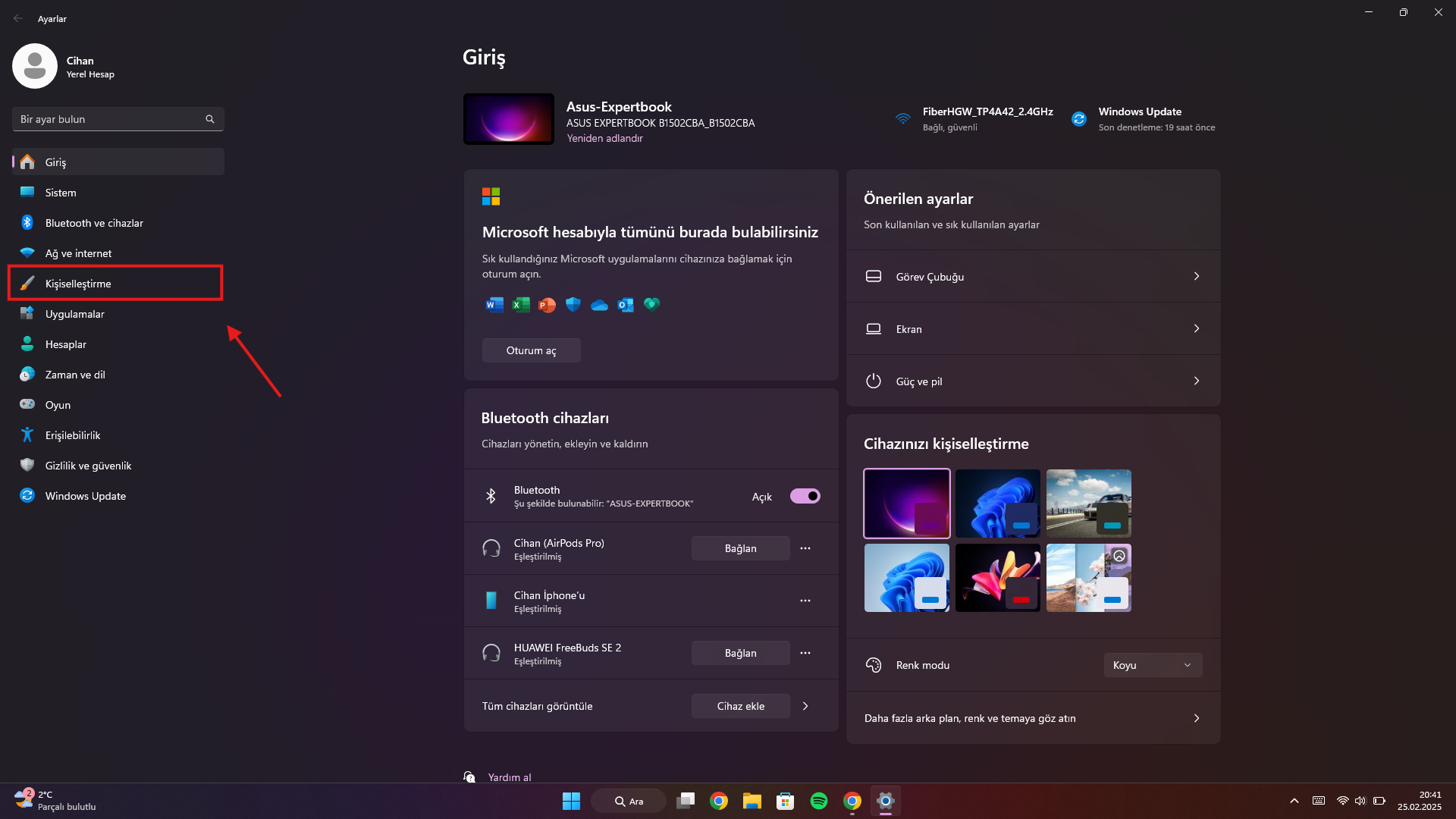 - Sol menüde bulunan kişileştirme sekmesine tıklayalım.