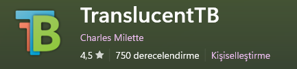 - Microsoft Store’u açarak arama kısmına TranslucentTB yazıyoruz ve ilk çıkan sonucun üzerine tıklayıp bilgisayarımıza indirmeye başlıyoruz, boyutu düşük olduğu için uzun sürmeden indirecektir.